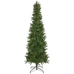Northlight 7′ Pre-Lit Yorkshire Pine Pencil Artificial Christmas Tree, Clear Lights Green