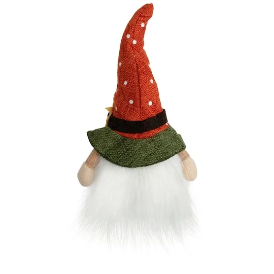 Decorate your mantles and table tops this fall season with this adorable sitting sunflower gnome with a long white faux fur beard and a bulbous nose. Featuring a yellow sunflower attached to the orange hat with white polka dots and a green brim, it will blend perfectly with your Thanksgiving décor. The hat is also accented with a brown band and yellow sunflower, and the gnome wears black boots accented with straw and jute bows. Designed with dangling legs, it will add a whimsical touch to your loving home.