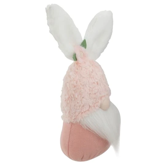 Add this gnome figure to your Spring or Easter decor. Designed wearing a pink hat and a long white faux fur beard. The bunny ears have bendable wire in them so you can position them however you like. Perfect to place on a tabletop or mantel in your home.