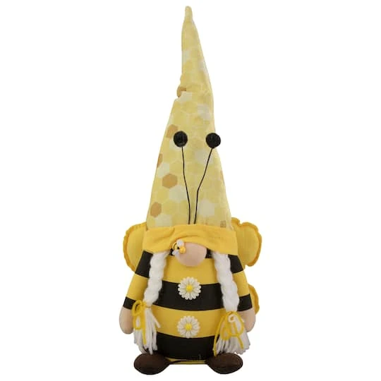 Gnomes are best known for guarding earthly treasures providing good luck and are perfect for protecting your goodies. This gnome is wearing a yellow and black striped bumblebee outfit complete with yellow wings and antennas. Her large bulbous nose pokes out from her hat with a bee on the tip and she has long white braids. Place this gnome on your mantle or alone on any table for the perfect spring or Easter decoration.