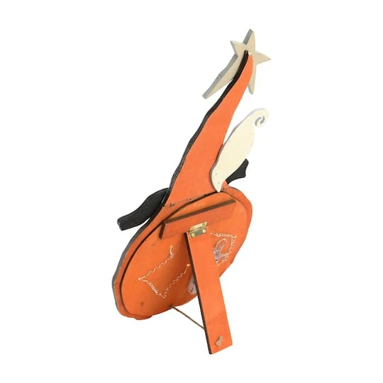 Add some fun to your Halloween décor with this whimsical standing pumpkin decoration. It features a Jack-o-lantern complete with the word “Boo” and a ghost peeking from behind the witch hat.