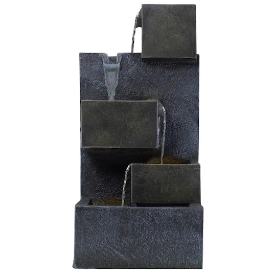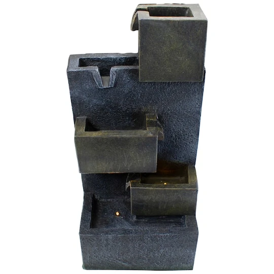 This renaissance-style water fountain has the look of stone with a geometric structure. It will provide a tranquil and soothing addition to your indoor or outdoor living areas. Featuring 5 tiers to create a rainfall effect you will relax to the sounds of the soft natural water flow as it trickles down through the fountain. Truly a unique water feature this piece is also lighted by white lights to illuminate your outdoor space.