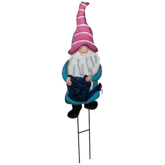 Add a splash of whimsy to your garden! Introducing our delightful gardening gnome yard sign – a charming and colorful addition to brighten up your outdoor space. This endearing gnome dressed in a stylish blue outfit and donning a pink pointy hat with white stripes is ready to sprinkle magic and joy throughout your garden. With a watering can in hand this adorable little helper is eager to nurture your plants and flowers to bloom in full splendor.