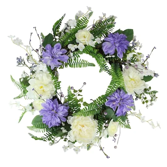 This spring wreath features realistic silk peonies and daisys that will add a spring feeling to any décor. Place above mantles and on doorways for an inviting feel.