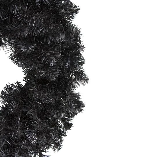 This unique black Colorado Spruce artificial wreath is perfect for taking your Halloween decorations up a notch or a chic modern approach to your Christmas decorations. Decorate with ornaments garland ribbon or lights or leave plain for a simpler look. This 24″ wreath works perfectly at home or at the office adding a wonderfully frightening touch to your décor.