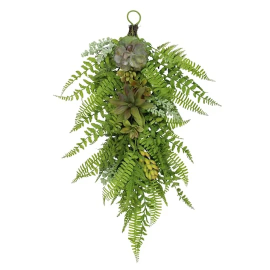Add a touch of nature to your décor with this life-like artificial succulent teardrop swag. Featuring a variety of realistic succulents intertwined with assorted green foliage. Hang anywhere in your home or office to accent your already existing décor.