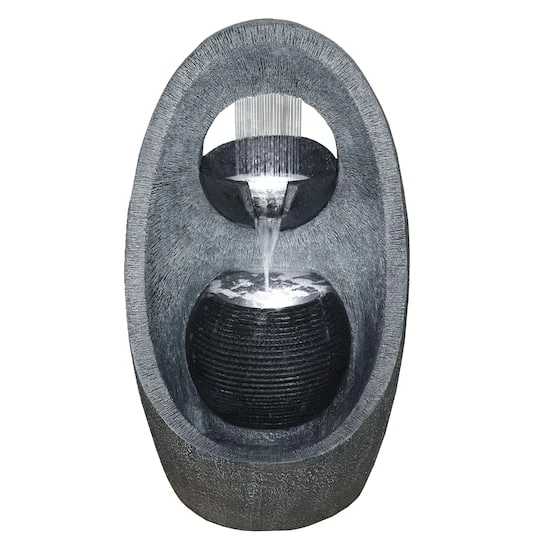 This gorgeous modern water fountain would be the perfect addition to your garden. Fountains are a great way to reduce stress provide relaxation improve your focus and promote wellness. Six LED lights surround the water spout in the lowest bowl creating a soft warm glow that illuminates the fountain beautifully at night time. This modern tiered fountain will match any already existing garden décor.