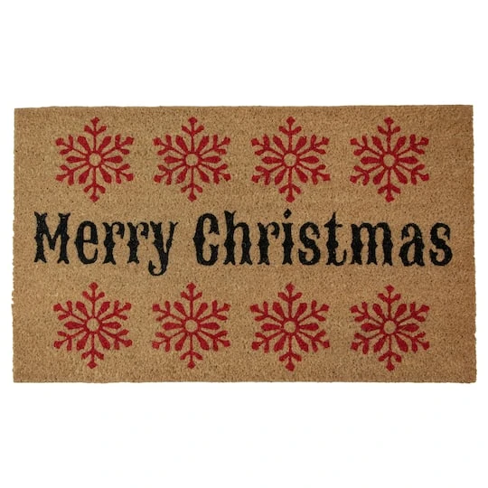 Add this festive Christmas doormat to your home this season. It features red snowflakes with “Merry Christmas” in black print. This doormat has been made for long-lasting durability and color. Its thick and durable coir fibers are perfect for trapping in dirt and moisture.