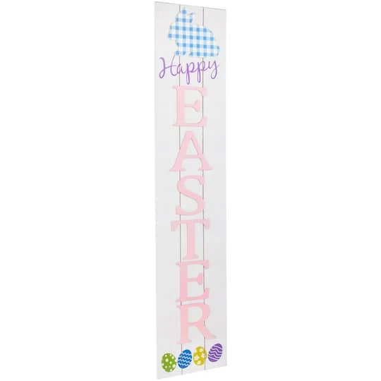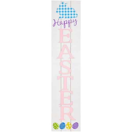 Add a touch of Easter joy to your home with this wooden wall sign. With its charming white finish this sign features the cheerful message “Happy Easter” adorned with vibrant colorful Easter eggs. The playful addition of blue gingham bunny accents brings a whimsical touch to your space making it a perfect decoration for the season of renewal and celebration.