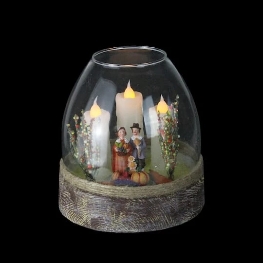 This adorable glass fish bowl jar would be a homey addition to any autumn décor. Featuring an autumnal scene with pilgrims and a cornucopia, this is sure to match any décor you may already have. Wouldn’t this look great in your living room or family room? The pilgrim light jar includes a fall design with a pilgrim couple inside, featuring a candle jar with 3 LED lights that can bring simple elegance to your home.