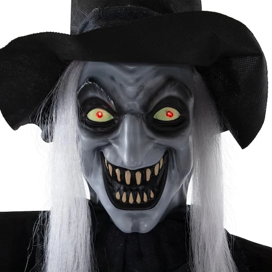Unleash the nocturnal allure of the undead with this lighted and sound activated vampire decoration, it is a chilling and elegant addition that brings the essence of classic vampire folklore to your haunted home.Â