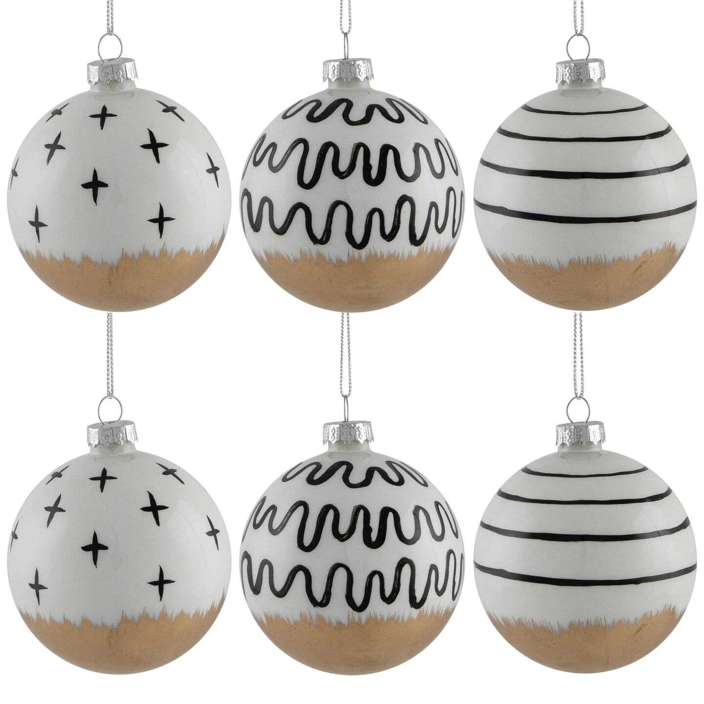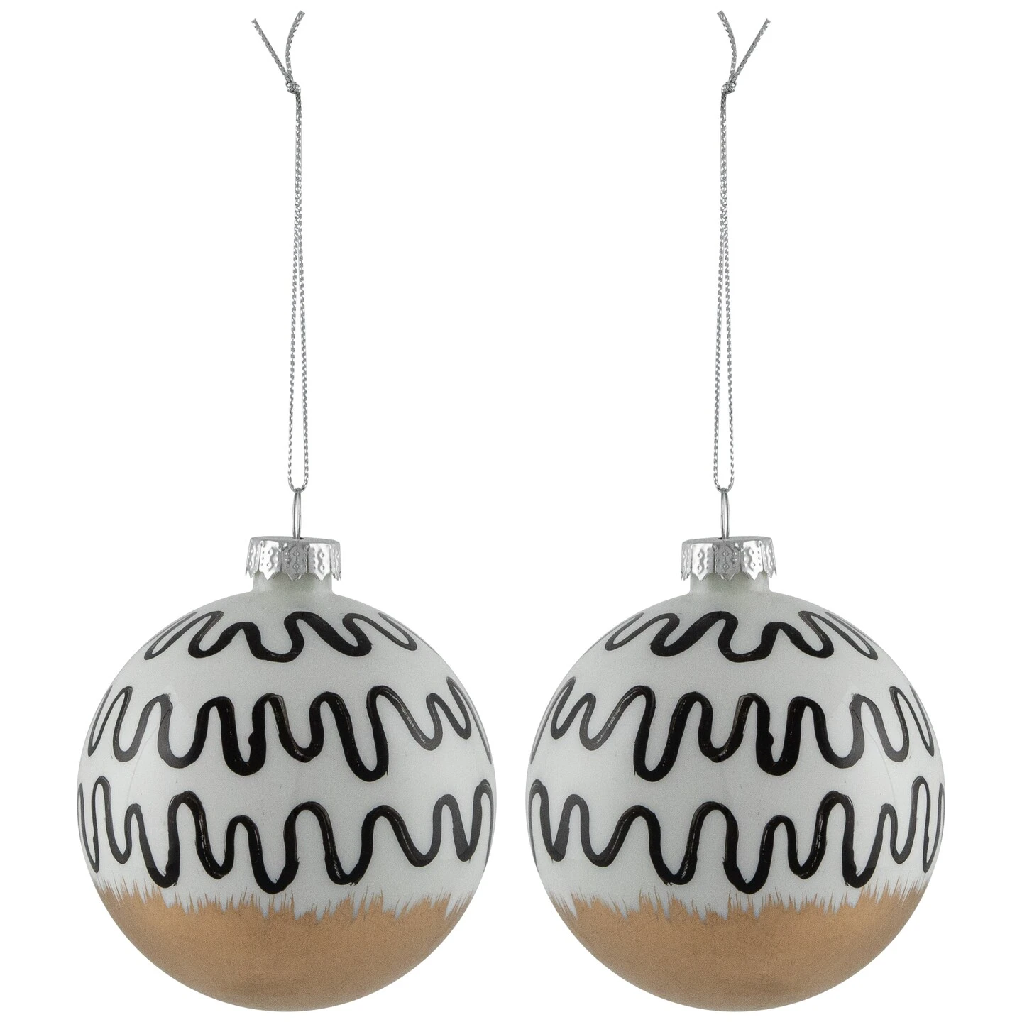 Dive into the enchanting world of holiday elegance with our set of glass ball Christmas ornaments. Crafted with attention to detail, each ornament boasts a timeless blend of classic sophistication and modern flair. Adorn your tree with the captivating, abstract designs, including sleek stripes, and mesmerizing wavy lines. Elevate your holiday decor with these stunning ornaments, adding a touch of refinement and charm to your seasonal celebrations.
