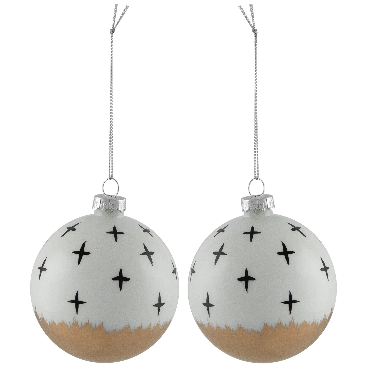 Balls are equipped with silver ornament caps