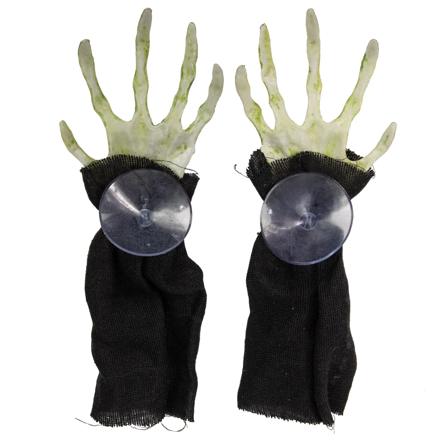Skeletons, ghosts and ghouls, Oh My! Add this ghastly gourd to your decor for a one of a kind statement piece. The hooded head and spooky hands lend a 3-D effect, as if it’s coming right through the window! Suction cups hold it securely to any smooth, flat surface.