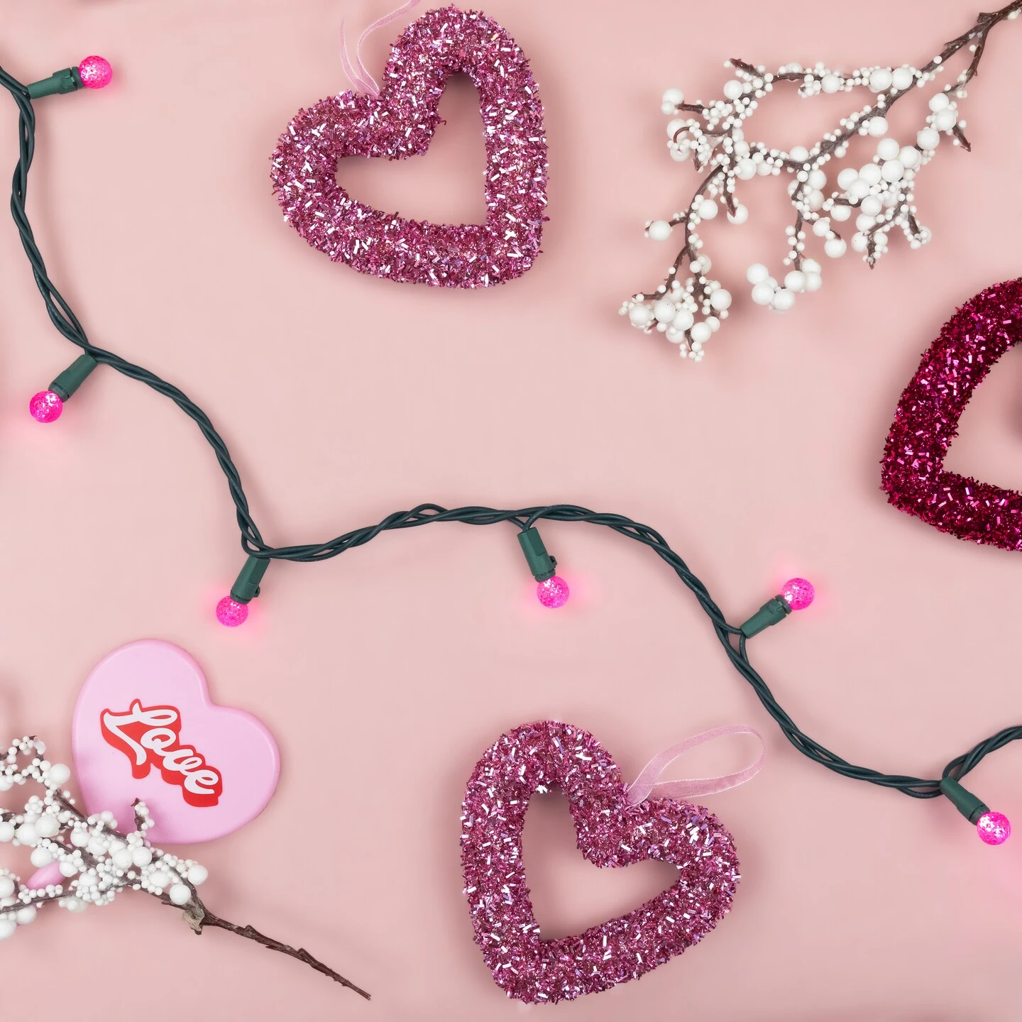 Color: pink bulbs / green wire