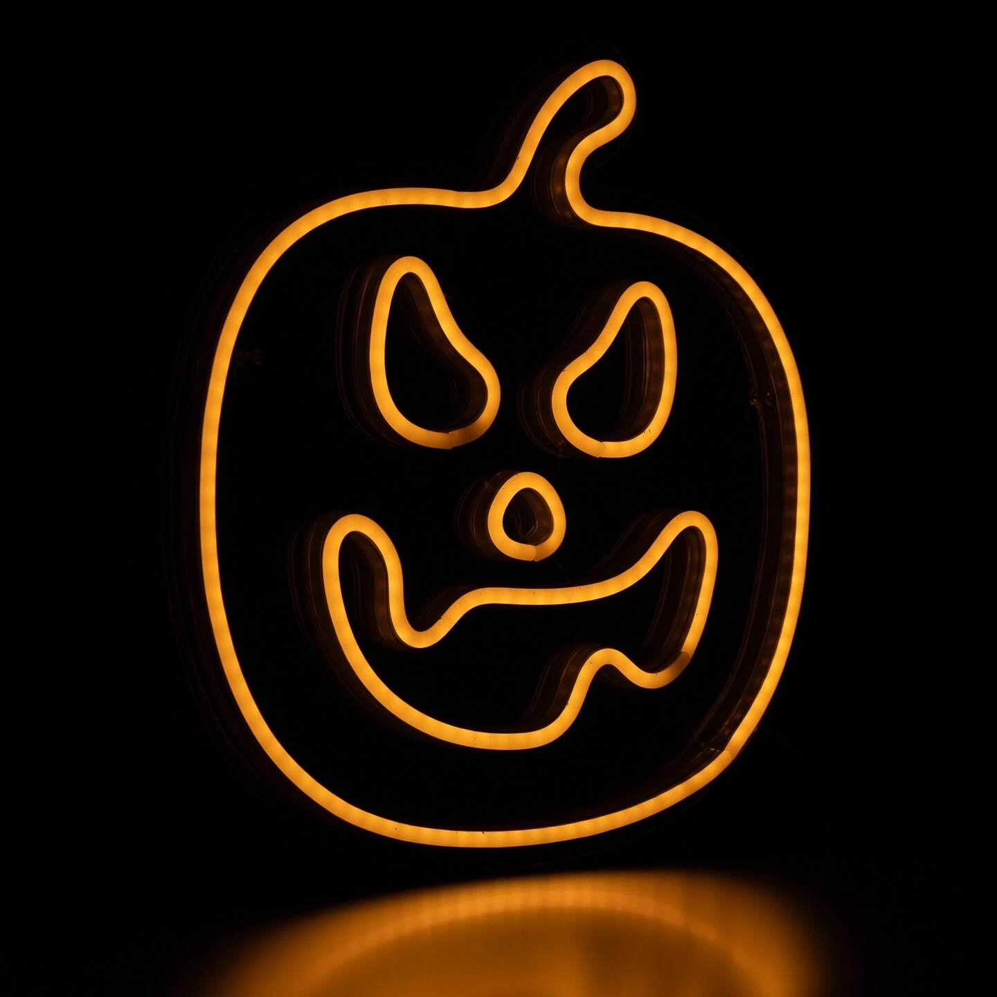 Light up your Halloween with decor that’s more treat than trick! This cheerful jack-o’-lantern LED light adds vintage neon vibes using bright, energy-efficient LEDs that stay cool to the touch. Mounted on a clear plastic frame and ready to hang, it makes a perfect window or wall decoration—instantly boosting your spooky season setup with a playful glow. USB-powered with an included AC adapter, this glowing LED neon pumpkin is the ultimate pick for festive flair that shines all night long.