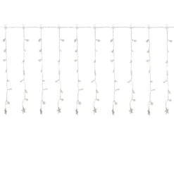 These unique star curtain stringed lights would be perfect for Christmas. Use them for your holiday decor, a birthday, or for everyday household use. Hang from the ceiling or along a wall for fun lighting. LED bulbs are cool to the touch and use much less energy than a traditional incandescent bulb.