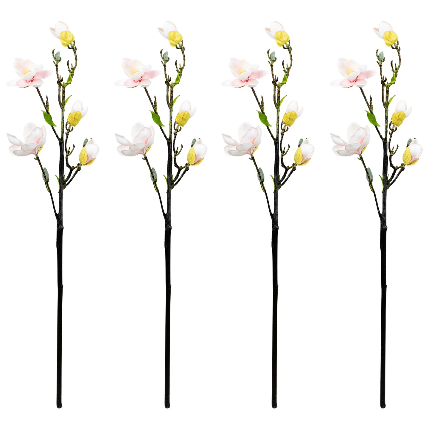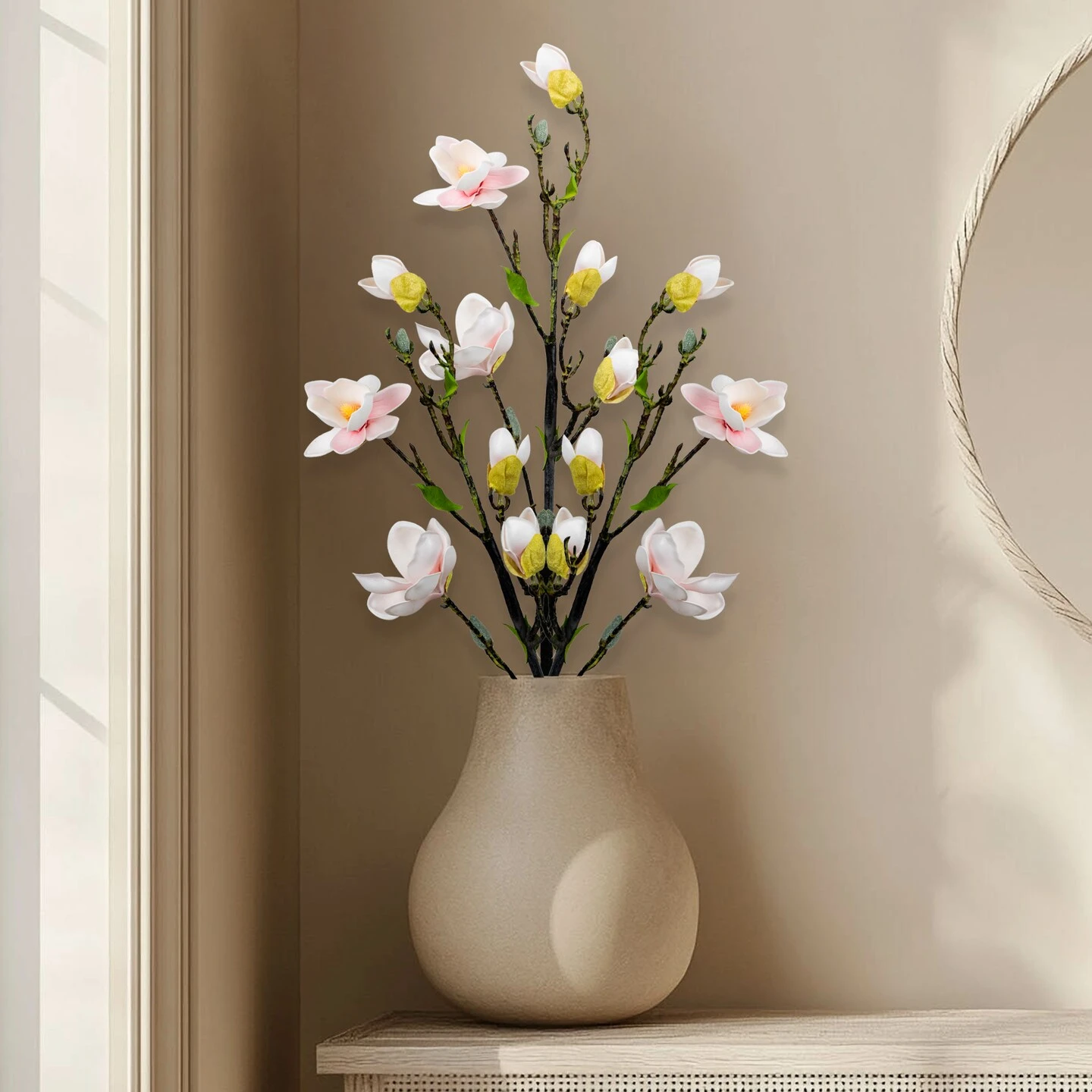 Add an elegant touch to any arrangement with these realistic white Magnolia sprays and their lush green leaves. Featuring a long stem with a bendable wire, tnhey are perfect for enhancing floral arrangements and centerpieces. These stunning floral sprays bring natural beauty to your home décor without the need for maintenance.