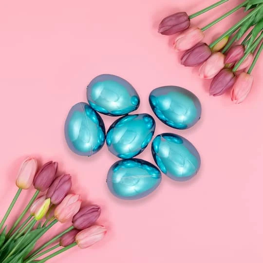 Start your Easter egg hunt off right with these metallic blue Easter eggs. You can easily add color into your home décor this holiday season with these bright eggs. Ideal for any place it’s a lovely and versatile décor addition.