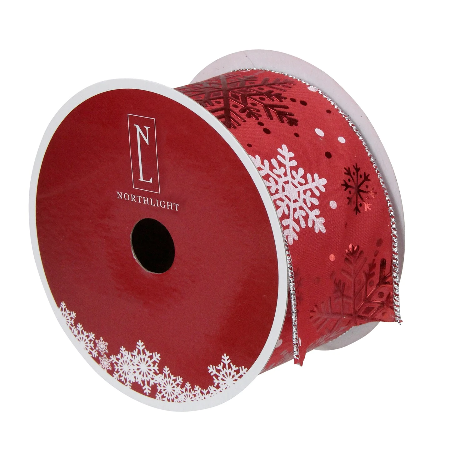 Metallic red and white snowflakes ribbon