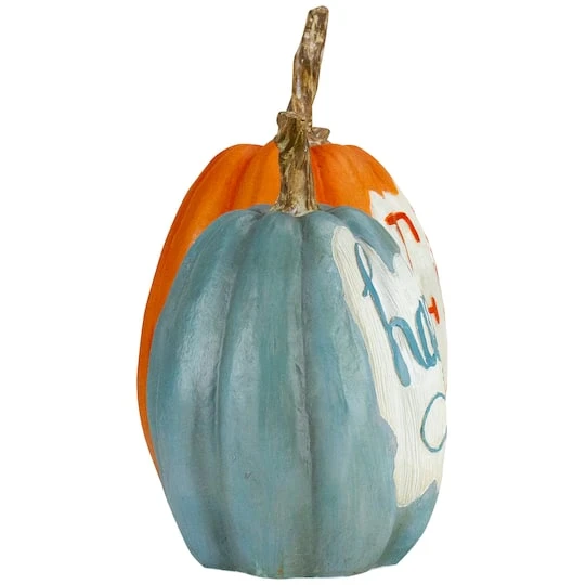 Put a different spin on your Autumn décor with this pumpkin sign. This trio of pumpkins welcomes you with ‘Happy Fall Y’all’ written across the front. This blue orange and green pumpkin statue is perfect for putting near your front door or on your tablescape. The perfect addition to your Thanksgiving and fall décor.
