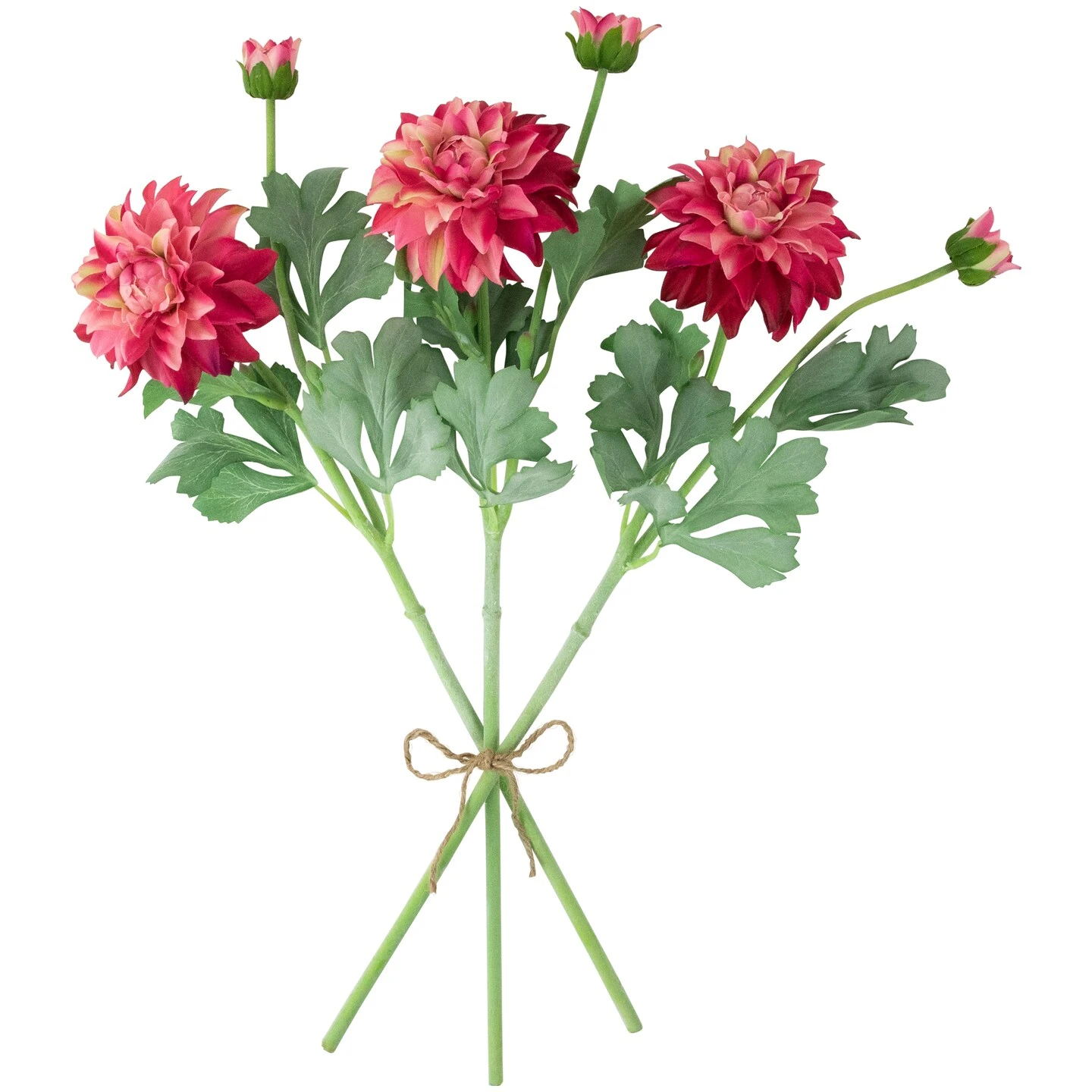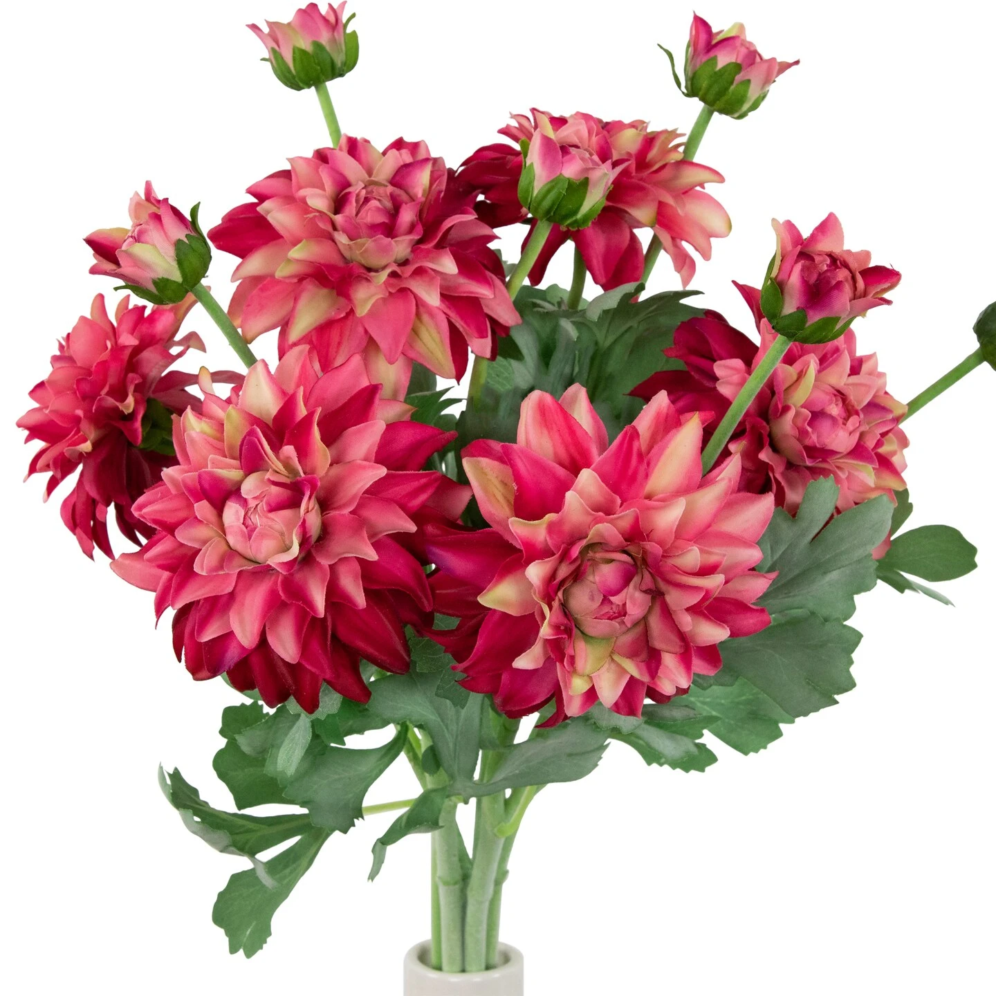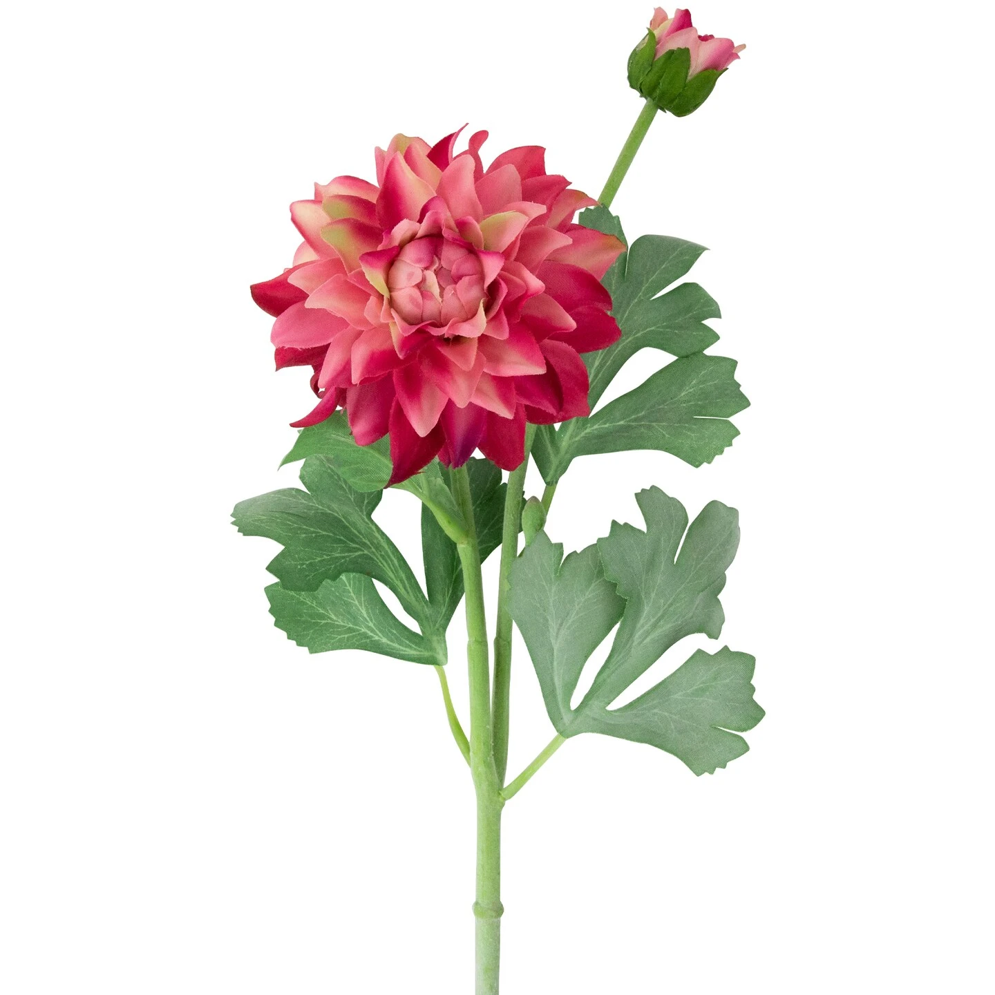 Our natural-looking Real Touch™️ artificial Dahila flowers are part of a specifically chosen selection of artificial florals, all selected for their outstanding quality. Add the perfect pop of color to your wedding bouquet or floral arrangement with these pink dahlia flowers. The Real Touch™️ feature makes these flowers feel like they were just picked from the garden. The mixture of fully bloomed and budding pink petals with soft green leaves creates the perfect depth to any piece. These realistic floral stems are great to use for bouquets, crafts, or adding that perfect final touch to any dining centerpiece.