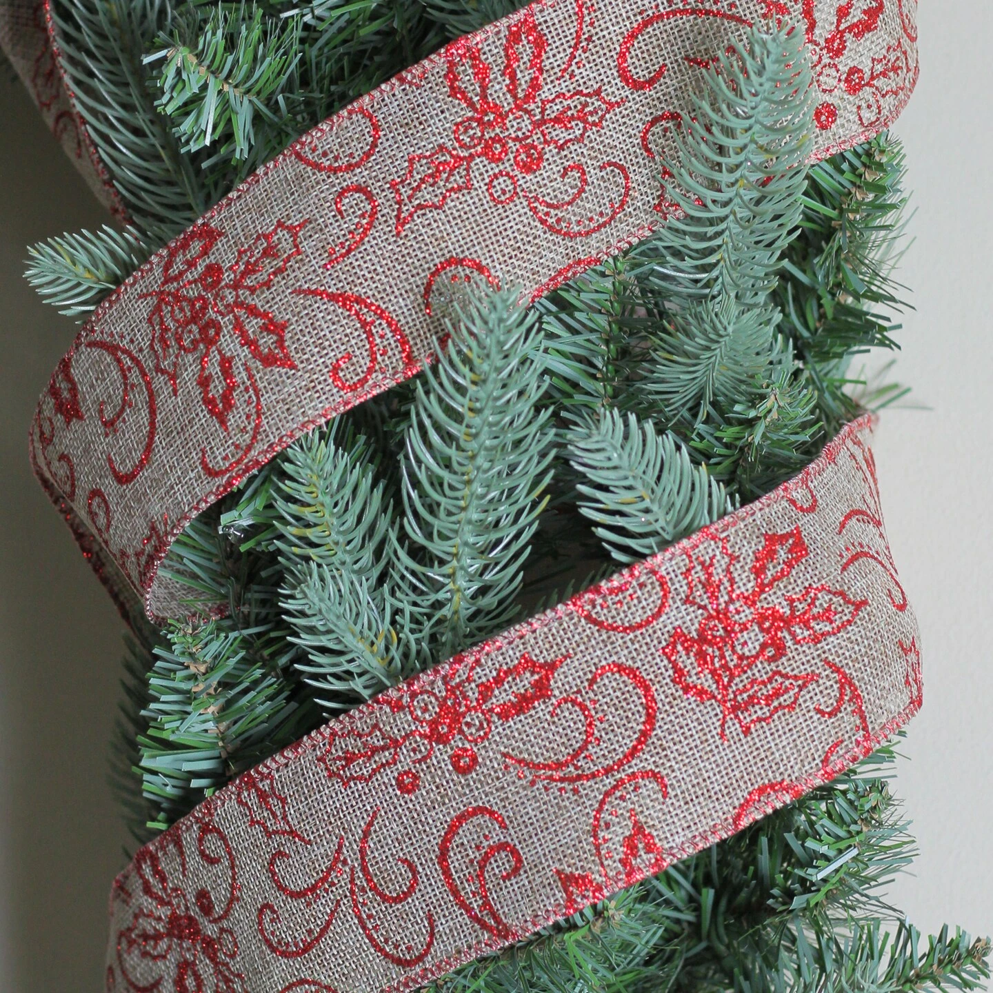 Shortage of adornments? No worries! Here comes this lovely ribbon to your rescue. Sports the eye-catching holly and berry design, this decorative sewn wire-edged piece offers endless decorating possibilities. The pro tip is that putting it on your tree will add a fresh charm.