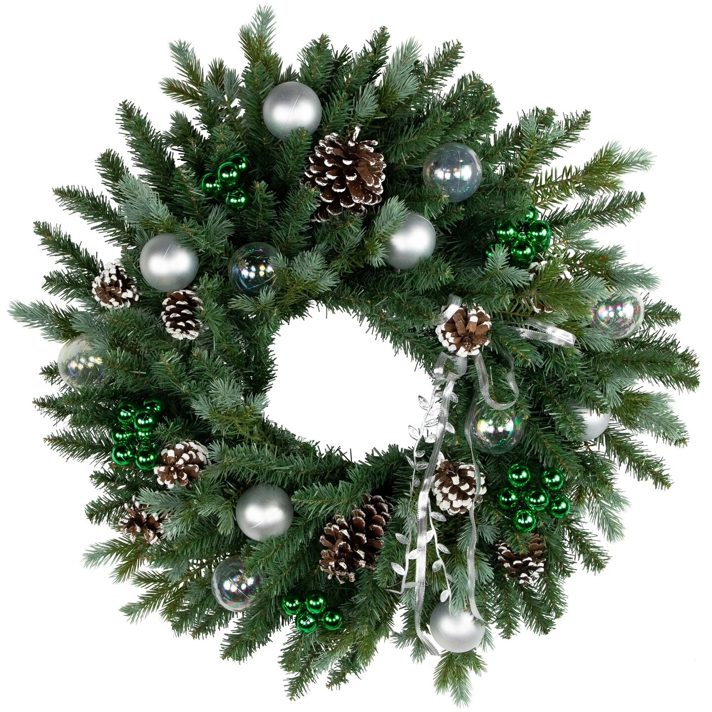 Add sparkle to your holiday décor with our Christmas pick. Featuring a radiant green finish, this convenient pick includes 30 shatterproof ball ornaments, perfect for bringing a touch of shimmer to your tree, wreaths, or garlands.